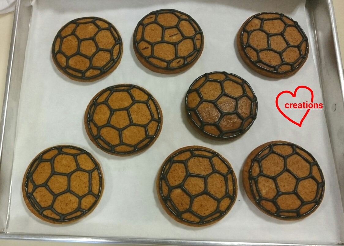 Here's how I iced the soccerball design on the cookies. It's best to let the cookies rest for a day after baking before icing them.