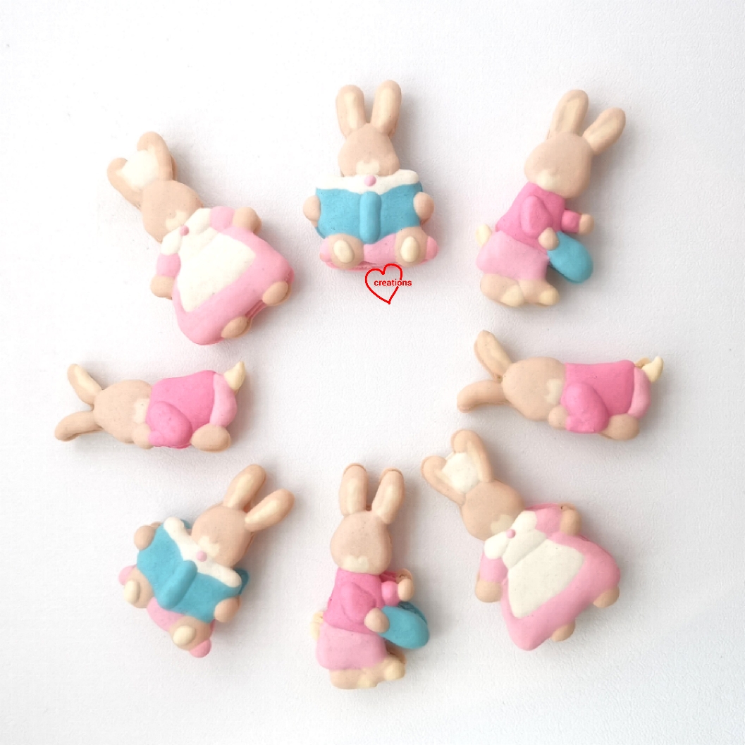 I used the swiss meringue method to make the macaron shells for the rabbits and french method for the giraffe and swing. I broke up the bake over 2 sessions as the rabbits alone took me 2h to pipe!